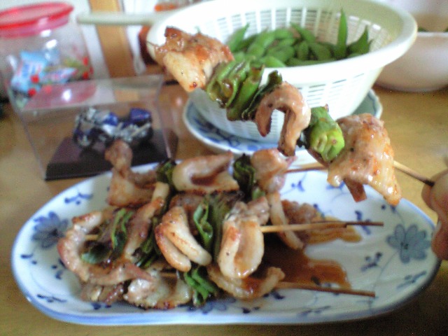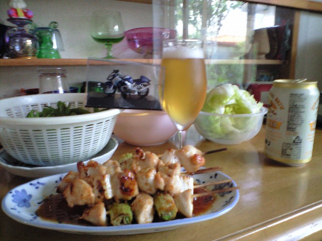 今日は生憎全然釣れないため、家で寛ぐハメに、焼き鳥、焼きバラ肉自分で作りました。