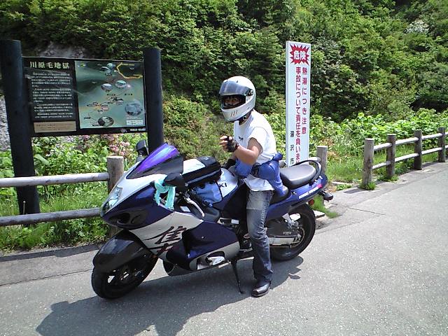 今日は久しぶりのツーリング日和です、前から行きたかった栗駒山をタンデムツーリングに、足湯です。ここの温泉につかりました。仙人の湯らしいです。画像は撮れませんでした。その後、小安峡へ、稲庭うどん。相方が歩くの嫌らしいので橋からその後、無料野天温泉、川原毛大湯滝へ。滝つぼが温泉。もちろん我々も浸かりましたよ、帰りはノーパンです。お土産は、夏限定かもめの卵ブルーベリーで〆。今度行く時は水着持参致します。