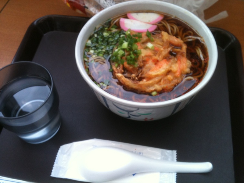 寒くて耐えられず、LAWSONのかき揚げそばです